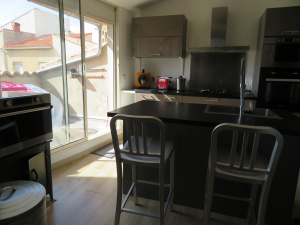 Location meublée à l'année, coeur de village de Villelongue de la Salanque, maison sur 3 niveaux de 90 m² composée en rdc d'une grande entrée avec rangements et coin buanderie. Au 1er étage, 2...